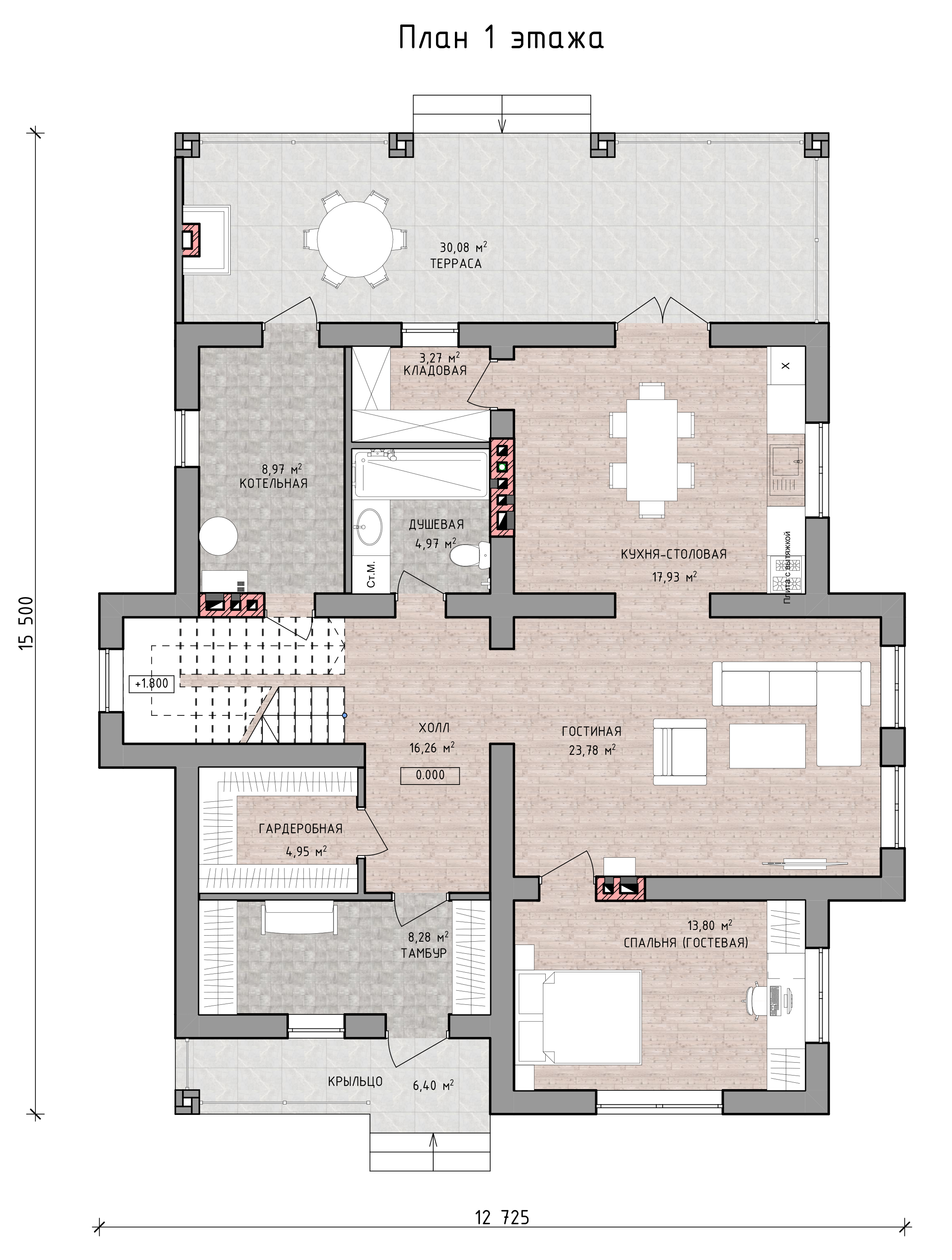 Одноэтажный дом, 283м2