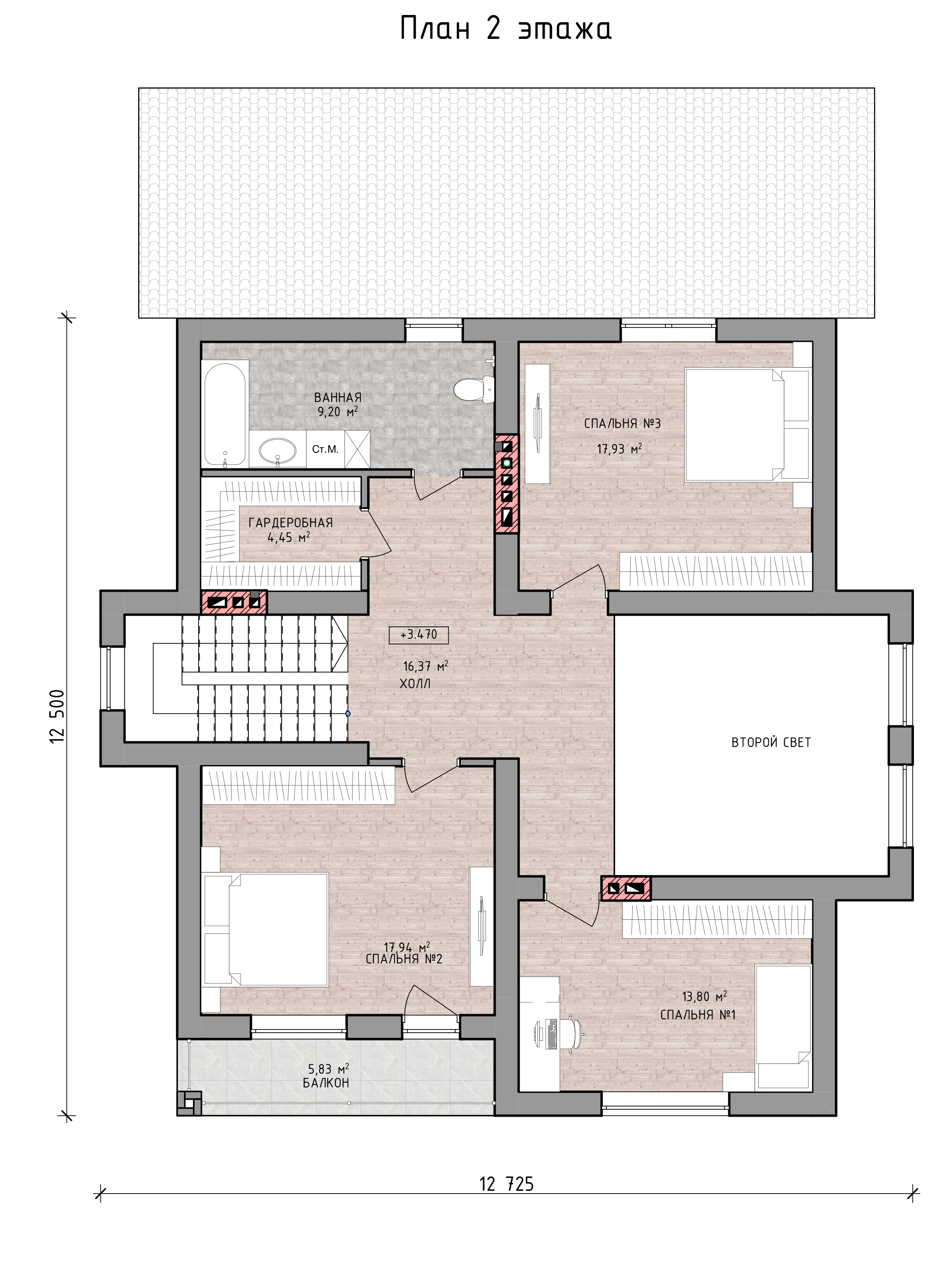 - Габариты — 11.40 × 14.35 м.
