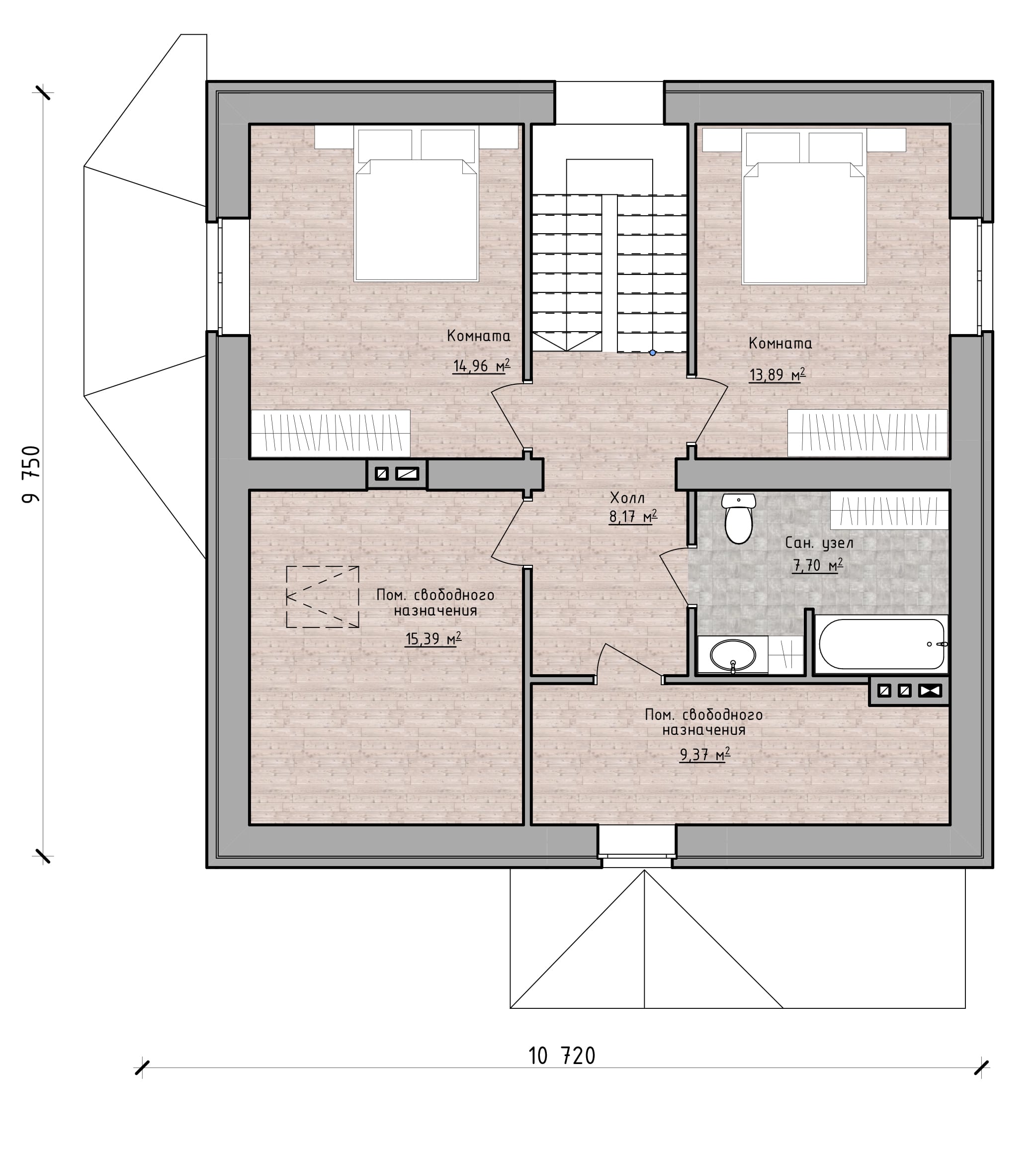 - Габариты — 11.40 × 14.35 м.